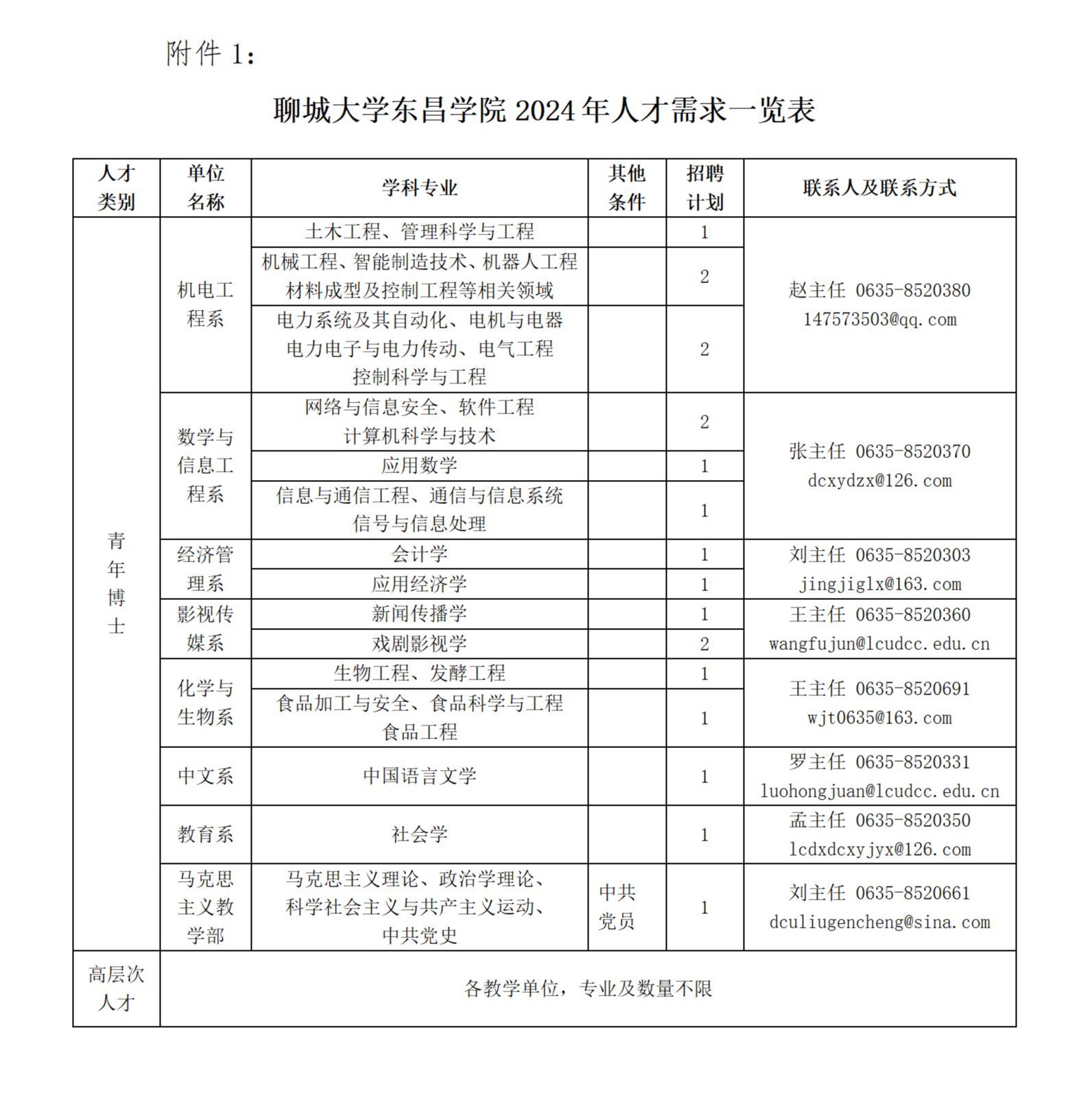 见《聊城大学东昌学院2024年人才需求一览表》(附件1),学术水平特别突出的青年博士可不受名额限制。