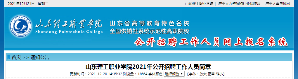 2021年山东理工职业学院公开招聘工作人员简章(100人) 2021-12-21