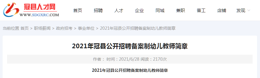 2021年聊城冠县公开招聘备案制幼儿教师简章(200人) 2021-06-28